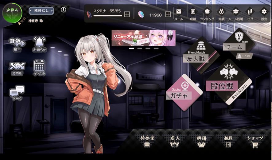 負けが込んで心が折れそうなとき、かわいいキャラが定型文ではなくプレイヤー一人一人に合わせた会話で励ましてくれる。差し入れなどで親密度を上げると「神対応」になることもある。