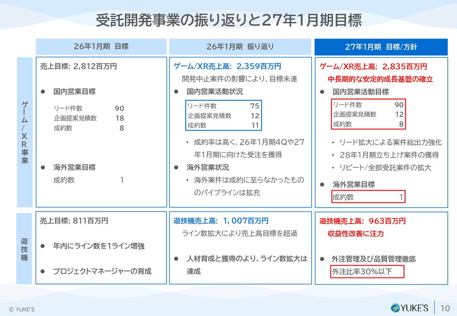 ゲーム・XR分野では、プロトタイプ案件の開発中止により第3四半期に稼働率が一時低下したものの、その後の営業強化により回復。通期では前期比8.8%増と増収を確保した。