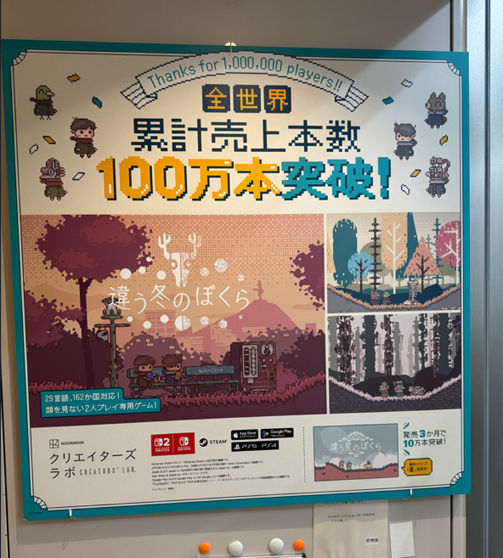 5年間で30本ほどを支援決定して、これまでにリリースされた作品が15本ほどです。だいたい10人くらいの編集者が1人4~5タイトルを担当するような形です。そのなかで一番売れたものでいうと、ところにょりさんの『違う冬のぼくら』(2023年2月)ですね。後続作品の『違う星のぼくら』もよく売れていて、シリーズ累計140万本にもなりました。PARCOさんではPOPUPショップをやったりサイン会をやったり、かなり立体的な展開にも広がっています。