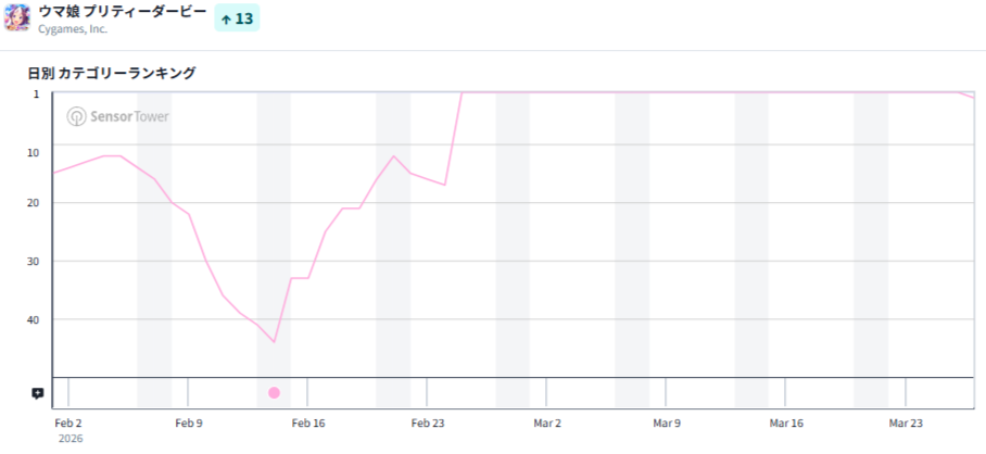| 1 | ↑2 | ウマ娘 プリティーダービー | Cygames |