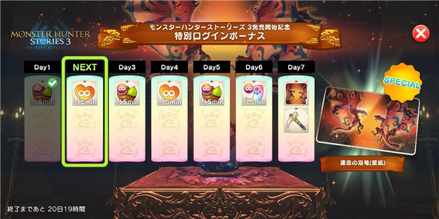 ■『モンスターハンターストーリーズ3 ~運命の双竜~』発売開始記念特別ログインボーナスを配布中!