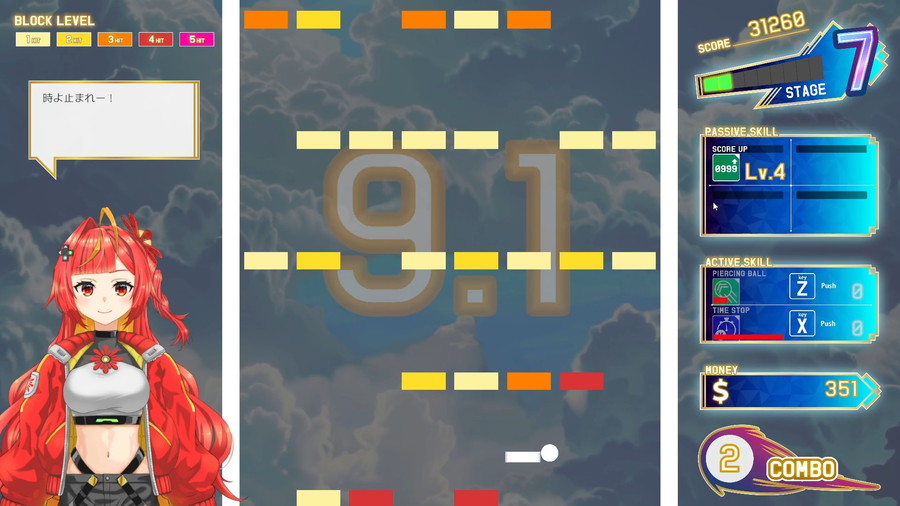 本作は、ボールを落としても終わらない無限の楽しさが特徴的なローグライク×弾幕STG×ブロック崩しだ。基本のルールは「ブロックを崩してポイントを稼ぐ」ことだが、ブロックにぶつかるとゲームオーバーになる。弾幕STGのような「避けゲー」と「ブロック崩し」を同時に体験できる。