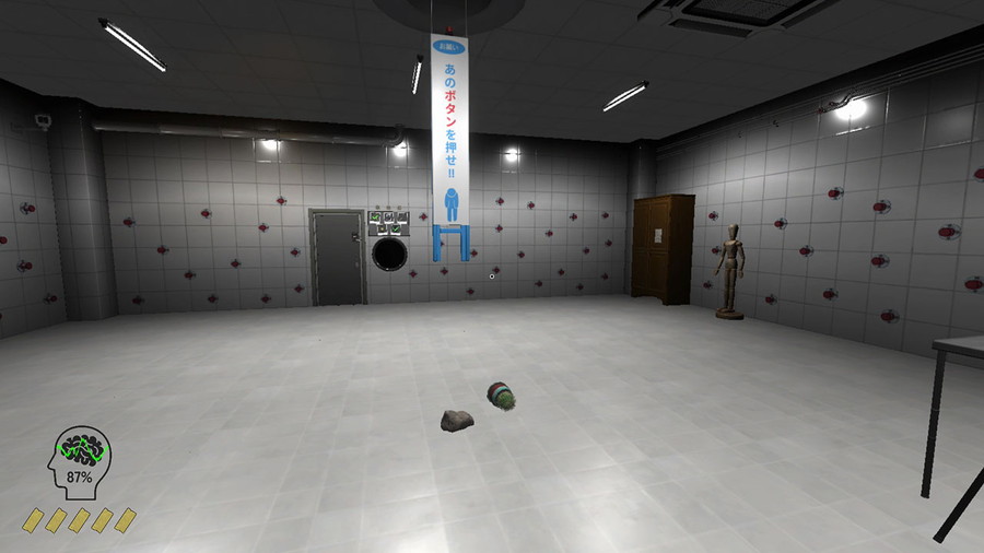 ・目覚めると周囲には少しの家具とマネキン、無数のボタンがある部屋からの脱出を目指すゲームだ。