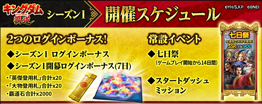 「キングダム 覇道」では、新規で始める場合どなたもシーズン1から開始となる。