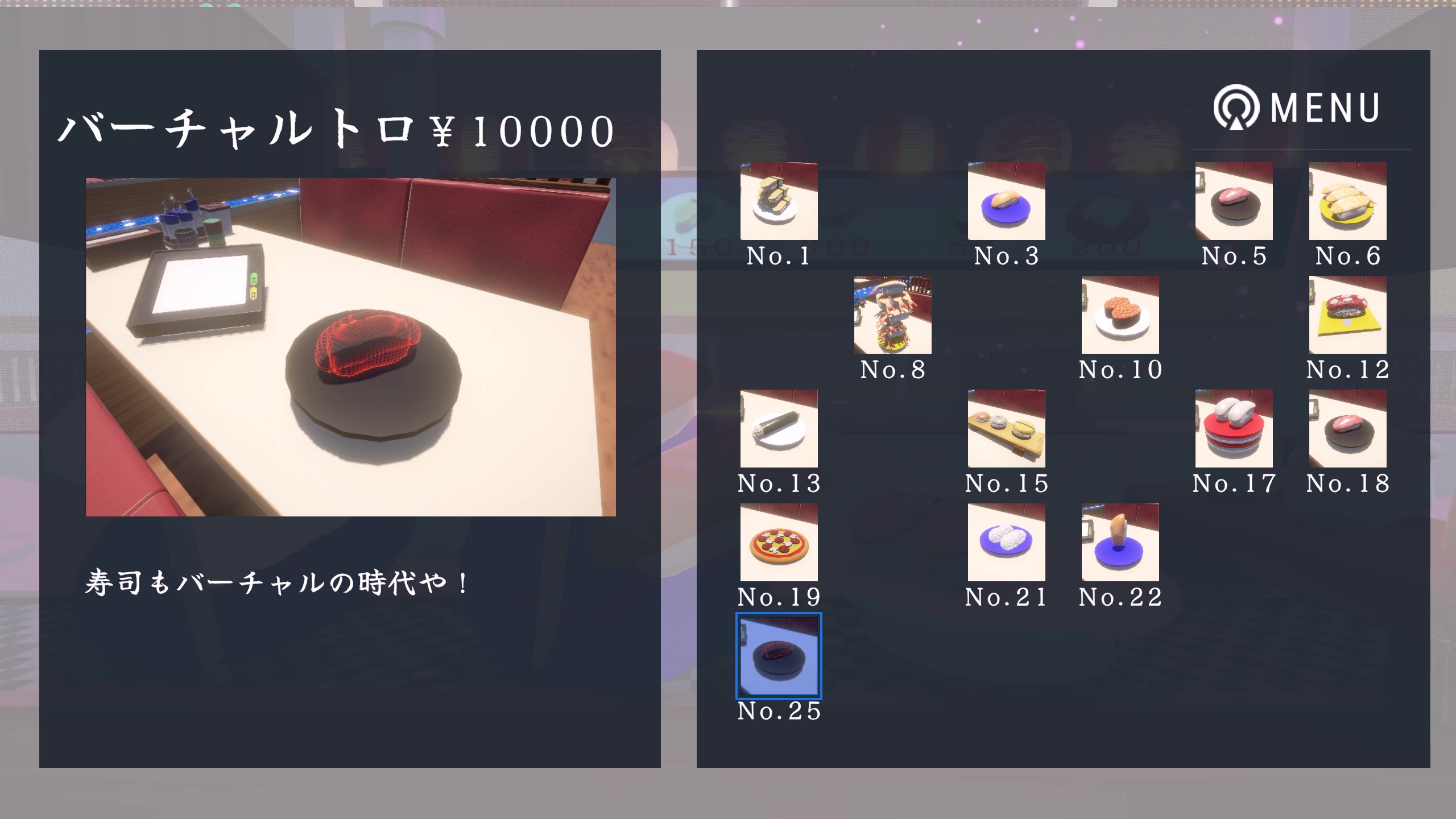 ノリノリなサーモンや、バーチャルなトロ、赤キノコ寿司、レーンを逆走するガリなど、ツッコミ所満載のヘンテコな料理をすべて獲得し、お寿司図鑑を完成させよう。