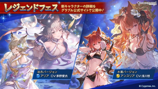 ・Cygames、『グラブル』でレジェンドガチャに「アリア」(浴衣バージョン)と「アンスリア」(水着バージョン)の解放武器が登場