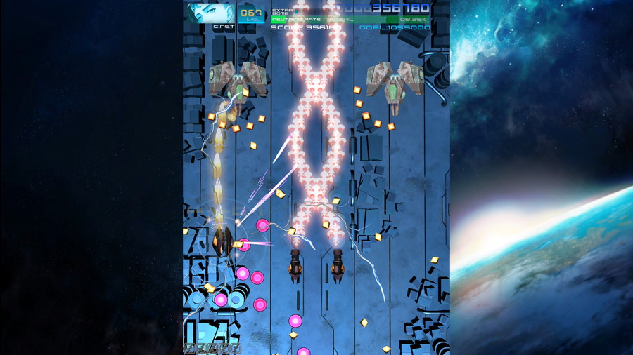 本作は、敵弾をかすらせて自機を強化する「BUZZ」システムが特徴的な弾幕シューティングだ。シリーズ独自の「BUZZ」システムは、敵の弾を自機にかすらせることで、ショットのパワーアップ、シールドチェーン、スコアブーストが発生し、自機がどんどんレベルアップして成長する。個性豊かなショットやボムを操り、爽快な弾幕シューティングを楽しめる。