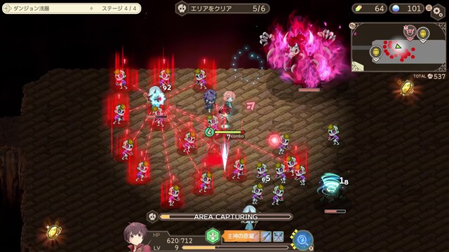 本作はレベルを上げ、装備を厳選し、大量の敵をなぎ倒す爽快アリーナシューターゲーム。ダンジョン内でステージごとに課せられた課題をクリアしながら、最奥にいるボスを目指そう。主人公ヒビキとともに、個性的なスキルを持った仲間を2人つれてダンジョンを攻略することができる。
