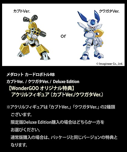 「メダロット カードロボトルRB カブトVer.」と「クワガタVer.」の両バージョンと豪華アイテムがセットになった「Deluxe Edition」が数量限定で同時発売する。ファン必携のアイテムが揃っている。