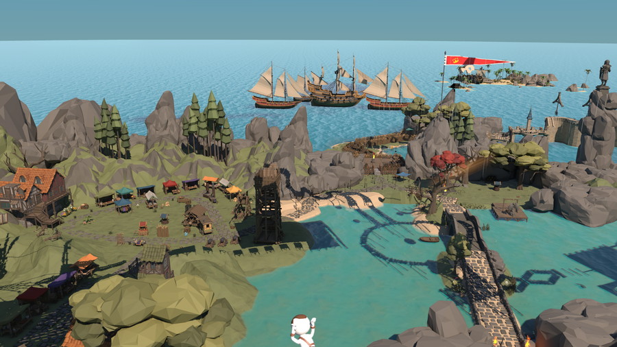 不意打ち特化したクロスボウ、進路をふさぐ転がる岩、突然崩れる床など、ハプニングは尽きない。操作を誤れば、王様の髭に火がついたり、振り子に巻き込まれて風車のように回転したりする。トラップは障害物であると同時に、このゲーム最大の笑いどころでもある。