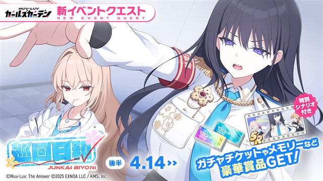 EXNOAとKMSは、『マブラヴ ガールズガーデン』(マブガル)において、風紀委員の新イベント「巡回日和」後半を開始し、新SSR「大賀 真桜」が登場したことを発表した。また、『マブラヴ オルタネイティヴ』とのコラボイベント「STRANGERS Ⅰ」の復刻イベントを開催する。