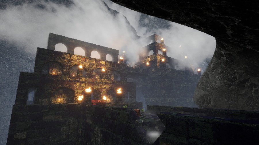 ダンジョンはプロシージャル生成とハンドクラフトデザインが融合しており、荒涼とした屋外の風景から、タイトで閉所恐怖症的な屋内まで、ユニークな環境で絶えず変化する道筋に直面する。