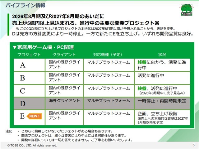 なお、売上5億円以上が見込まれるプロジェクトが新たに1つ企画、立ち上げ段階にあるという。こちらは売上への本格的な貢献は2027年8月期以降を予定しているとのことだ。