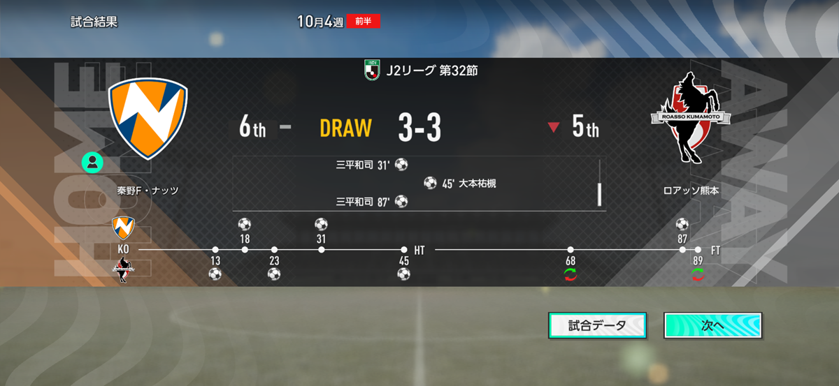 神奈川ダービーの次はプレーオフ進出争いか。息つく暇もねーな。まぁ、結果から言うと互いに譲らず痛み分けに終わったよ。