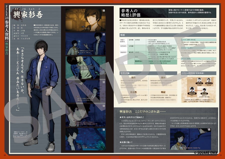 ・開発チームの全面協力により、登場人物たちの詳細なプロフィールや行動記録、エンディングを含むストーリー解説を網羅している。