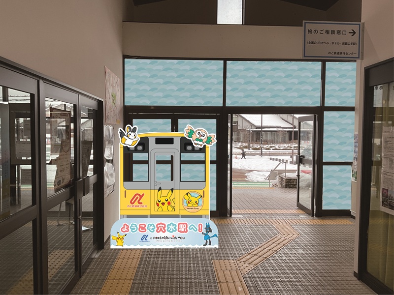 令和6年8月1日に運行を開始した『のと鉄道 POKEMON with YOUトレイン』は、発災後いち早く地域を勇気づける取り組みとしてスタートした。4月28日正午には、穴水駅で新たな駅舎装飾のお披露目を予定する。駅の正面に装飾がなされるほか、同トレインを模した顔出し看板が設置される予定だ。穴水駅の『ポケふた』には、トレインにも描かれているプラスルとマイナンが登場している。