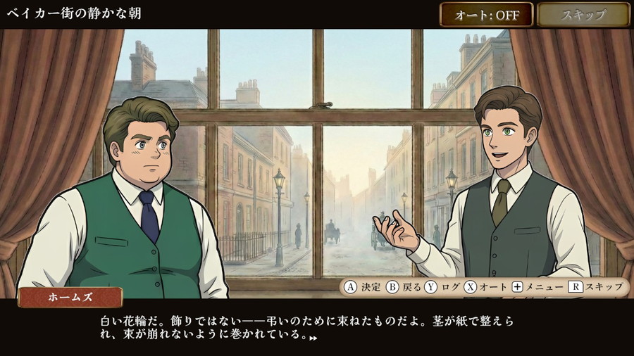 プレイヤーはホームズとワトソンとともに、証言や状況を整理しながら真相へ迫り、緊張感ある駆け引きと重厚な物語を楽しめる。