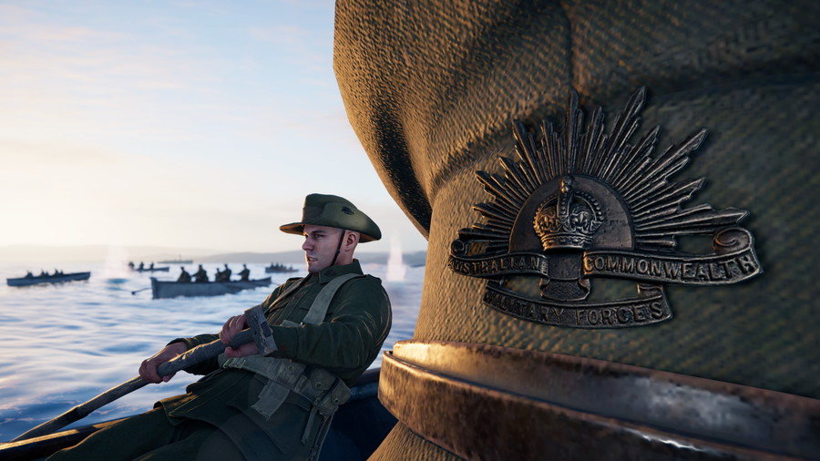 トレーラーでは、激しい砲火の下、もろい手漕ぎボートで海から岸辺へと漕ぎ進む有名なビーチ上陸を、一人称視点で体験できることを示唆している。プレイヤーはボートから浜辺に飛び降りて身を隠し、後には丘を越えて最前線の塹壕まで進撃する。ゲームには、支給品缶で作られた個人用爆発物、ANZACsの「スローチ」型ハット、危険な手漕ぎボートを特徴とするビーチ上陸の再現など、歴史的に正確なディテールが盛り込まれている。