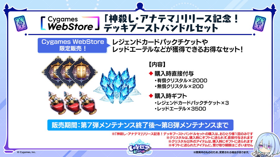 新カードパック追加を記念して、Cygames WebStore 限定商品や特典付きカードパックセットなどのお得な商品が販売される。