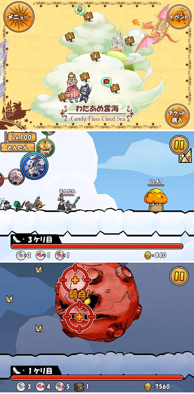 今回のアップデートでは、新エリア「わたあめ雲海」が登場する。ふわふわで美味しそうな雲の世界はトラップが多く仕掛けられており、さらに、トランポリンのようによく弾み、着地してもバウンドが止まない。また、「わたあめ雲海」のボスとして「フワフワ」が登場する。一度当たると大ダメージを受けてしまう強力なガス攻撃と隕石攻撃を使い、「姫」と「兵士」の行く手を阻む。