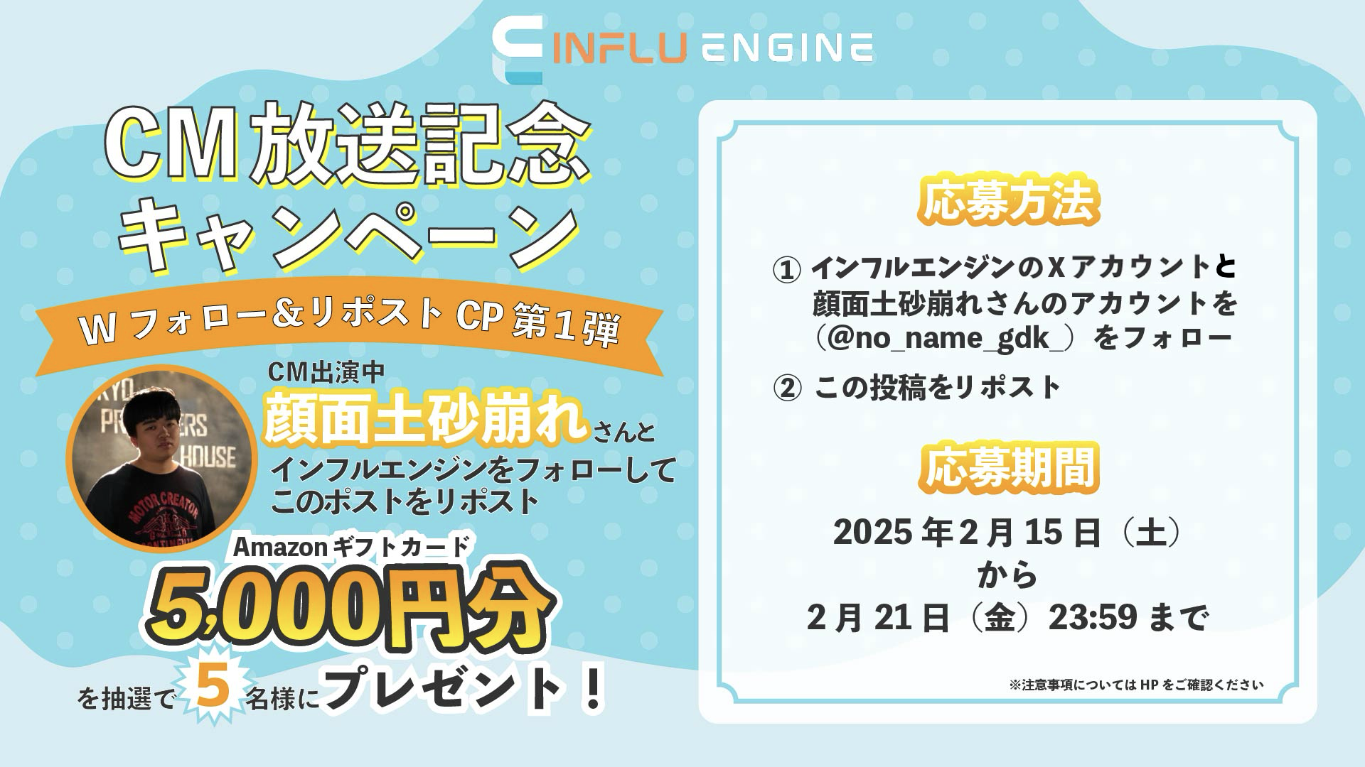 【お知らせ】「INFLU ENGINE」にてインフルエンサーの顔面土砂崩れさんと増田結芽さんが出演する新TVCMを放送!放送を記念したキャンペーンも開催中!