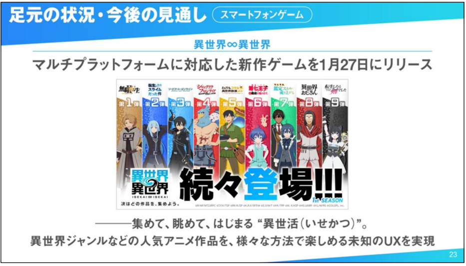 コロプラ、新作『異世界∞異世界』について「ユーザーからの反応は概ね良好」 新規作品の参戦のたびにユーザー流入が発生と成長イメージも明かす