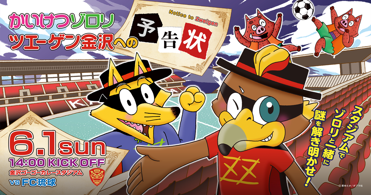 ツエーゲン金沢×「かいけつゾロリ」のコラボマッチが開催決定…対象試合は6月1日の明治安田J3リーグ・FC琉球戦