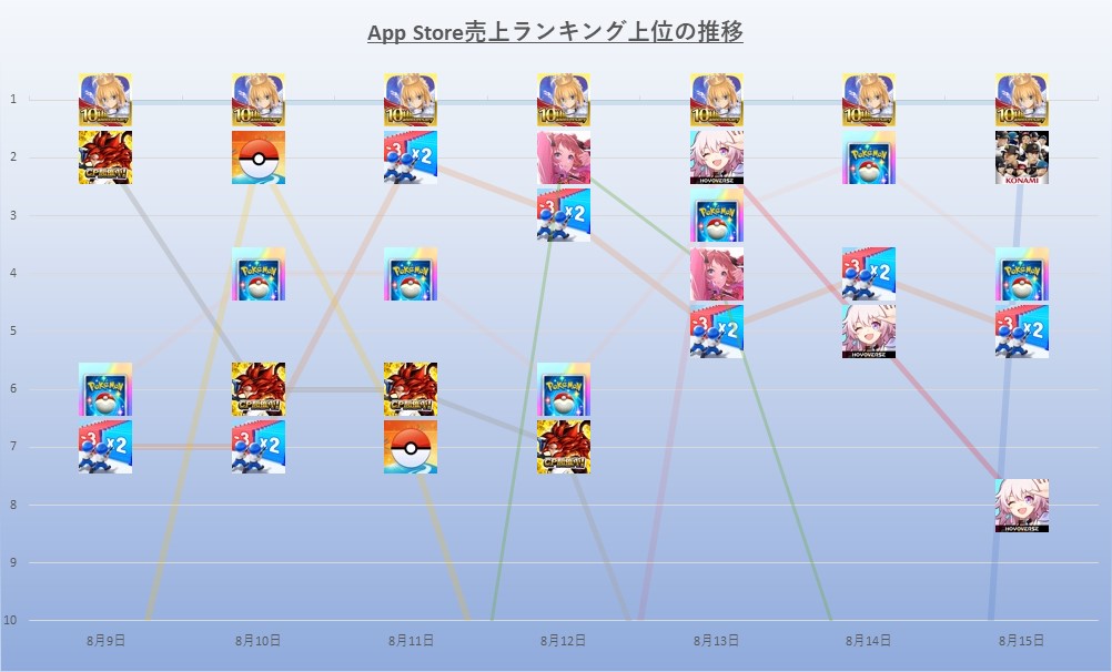 【AppStore(8/9~8/15)】10周年イベントの『FGO』が9日連続首位と圧倒的強さ 周年・記念施策で各タイトルが急浮上