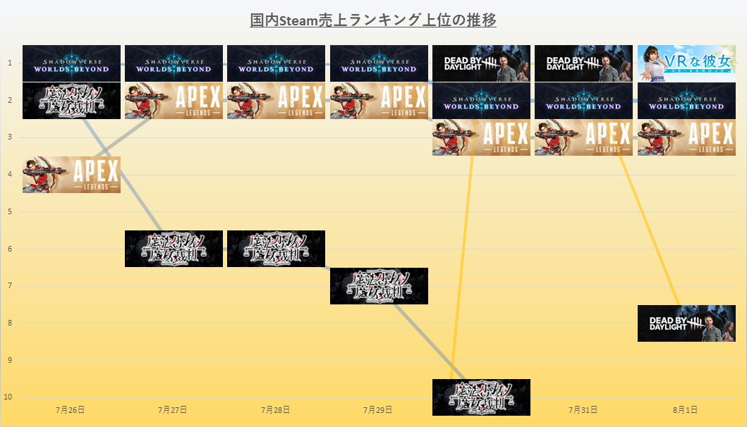 【Steam(7/26~8/1)】『シャドバWB』が引き続き存在感 コラボ実施の『デッドバイデイライト』と新作VRゲーム『VRな彼女』も躍進