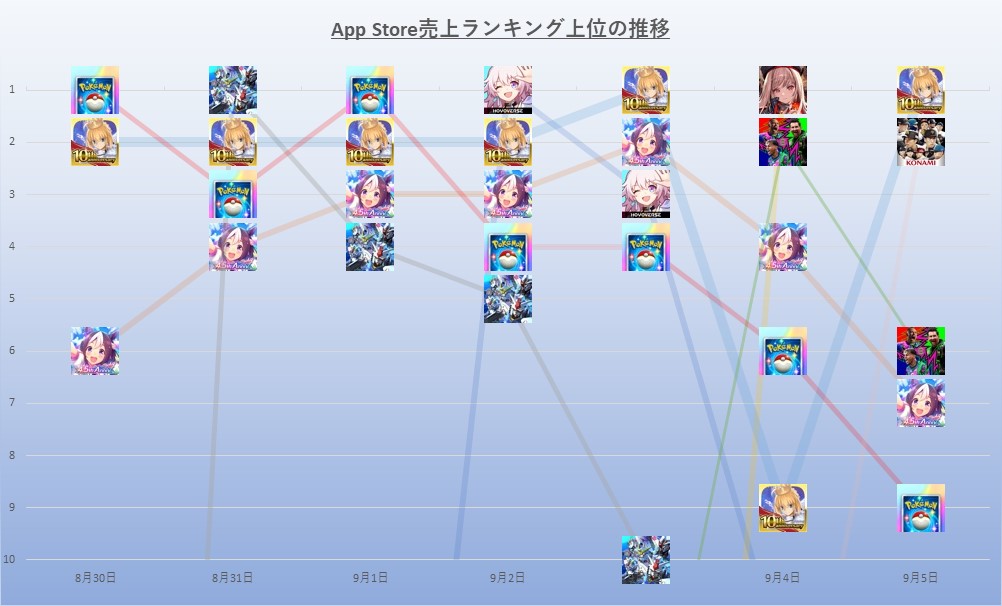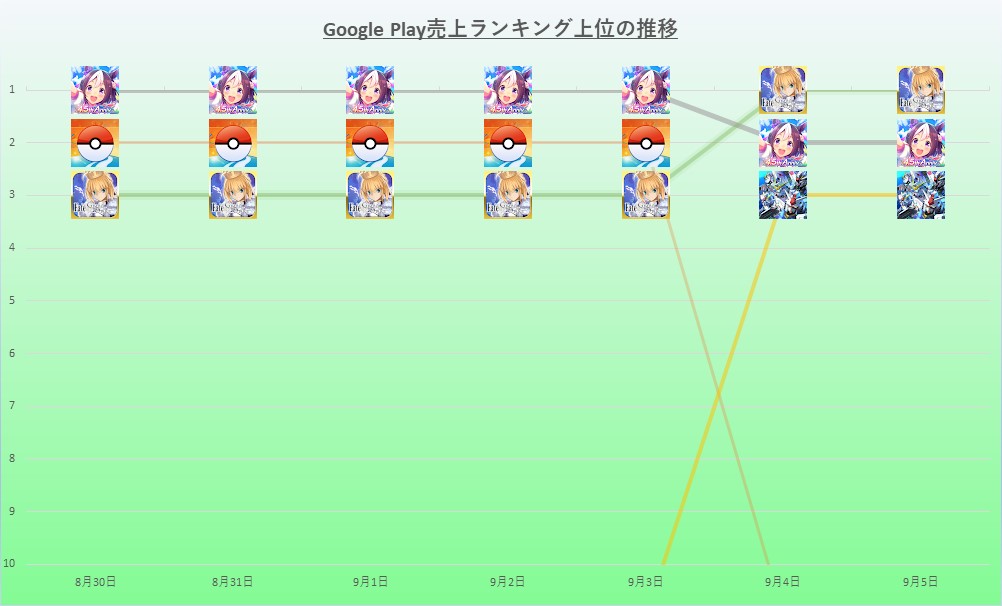 【GooglePlay(8/30~9/5)】8月28日から「動きなし」が続いたが、9月4日になってようやく動き出した