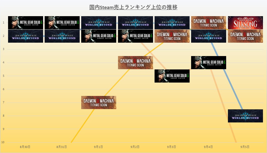 【Steam(8/30~9/5)】『シャドバWB』と『MGSΔ』が引き続き強さ発揮 『デモエクTS』『ホロナイ』『みんゴル』『Hell is Us』など新作躍進