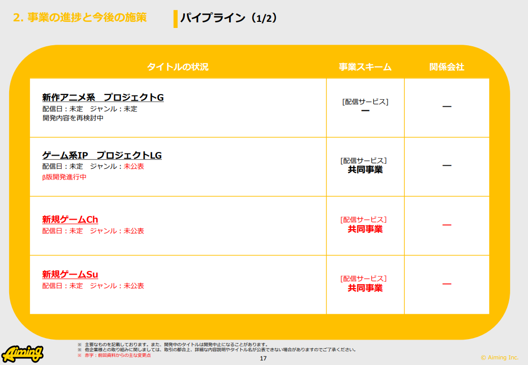 Aiming、新作パイプラインとして『Ch』と『Su』を発表 小規模だが開発が急ピッチで進捗 競輪投票アプリは「しっかりと利益創出」と期待