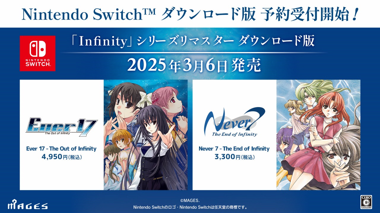 MAGES.、Switch向け『Ever 17』&『Never 7』リマスターのダウンロード版予約受付を開始!秋葉原ではPOP UP STOREが開催決定