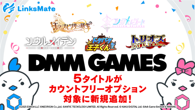 LogicLinks、MVNOサービス「LinksMate」にて『DMM GAMES』で配信中の5タイトルがカウントフリーオプション対象コンテンツとして9月18日より追加
