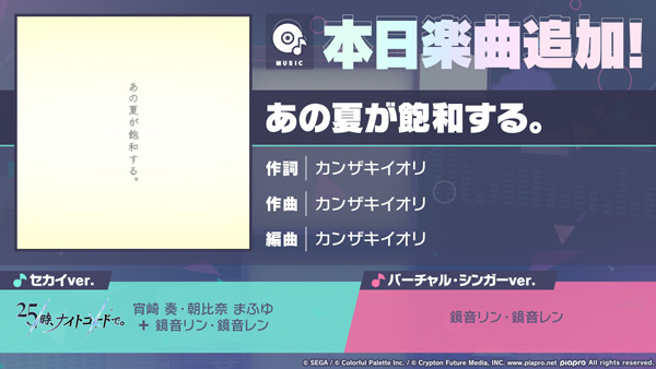 セガ、『プロジェクトセカイ』で「あの夏が飽和する。」をリズムゲーム楽曲として追加