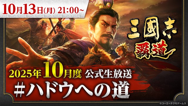 コーエーテクモ、『三國志 覇道』10月度公式生放送「#ハドウへの道」を10月13日21時より実施決定!