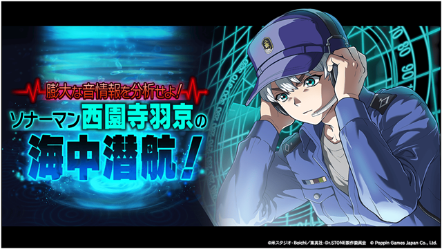 ポッピンゲームズジャパン、『Dr.STONE バトルクラフト』で復刻イベント「[復刻]膨大な音情報を分析せよ!ソナーマン西園寺羽京の海中潜航!」を開催!
