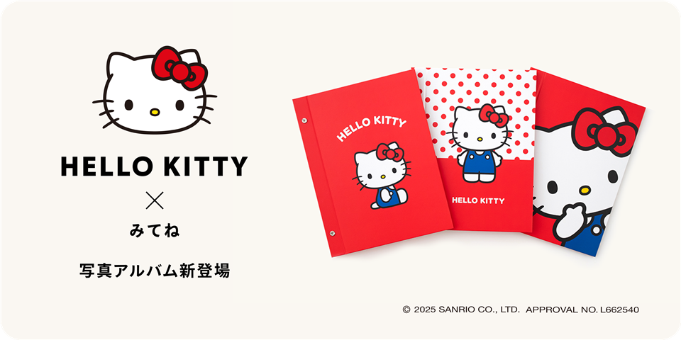 MIXI、子どもの写真・動画共有アプリ「家族アルバム みてね」で「ハローキティ」デザインの「写真アルバム」を販売開始