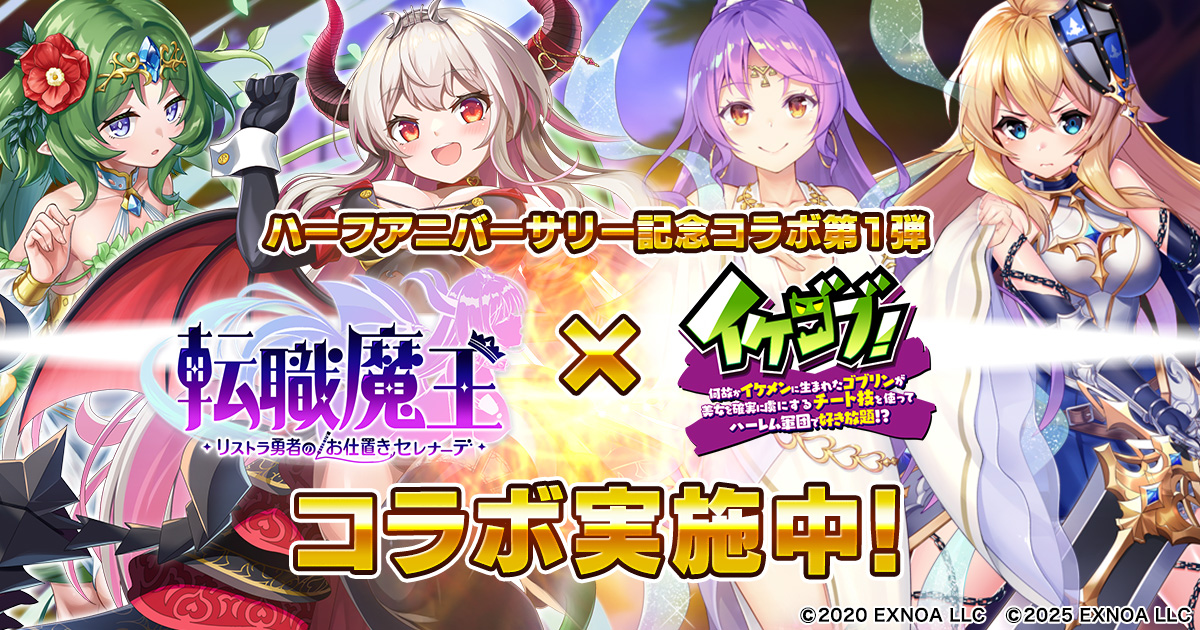 EXNOA、『転職魔王~リストラ勇者のお仕置きセレナーデ~』にてハーフアニバーサリー記念!4大コラボ開催&豪華キャンペーンを実施