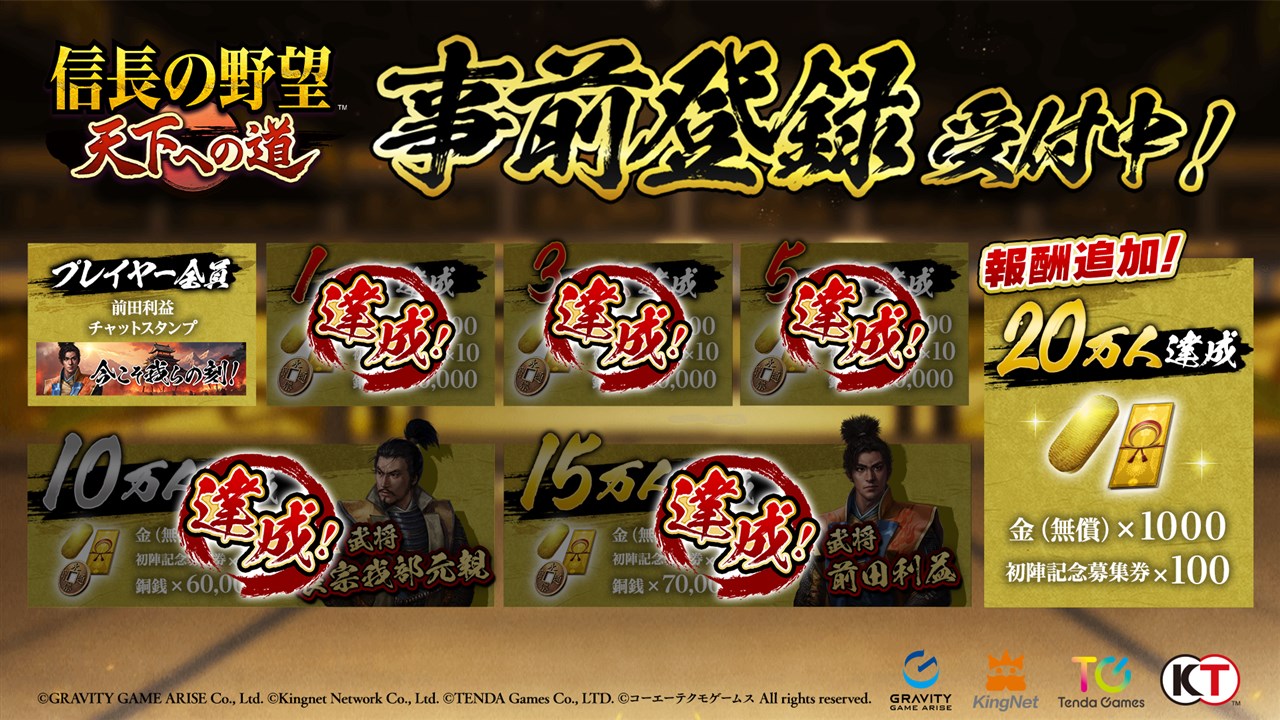 グラビティゲームアライズ、『信長の野望 天下への道』の事前登録者数が15万人を突破 事前登録キャンペーン報酬を追加