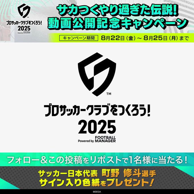 セガ、『サカつく2025』でサカつくやり過ぎた伝説! 動画公開記念CPを開催中…ラスト8人目はヨーロッパで活躍する日本代表FWの町野修斗選手