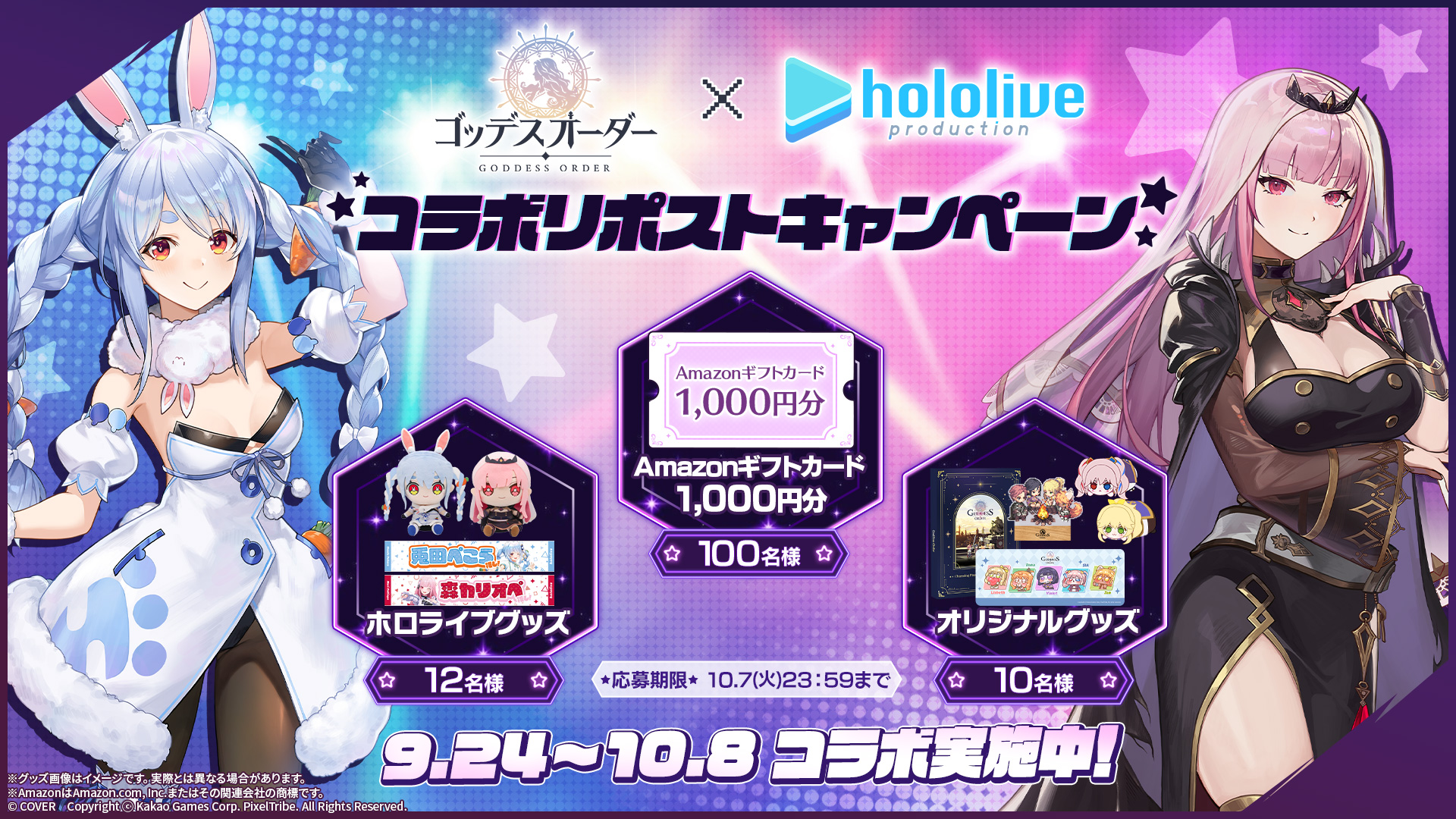 カカオゲームズ、爽快アクションRPG『ゴッデスオーダー』でホロライブ公式グッズが当たるCP開始…声優「伊瀬茉莉也」サイン色紙が当たるCPも