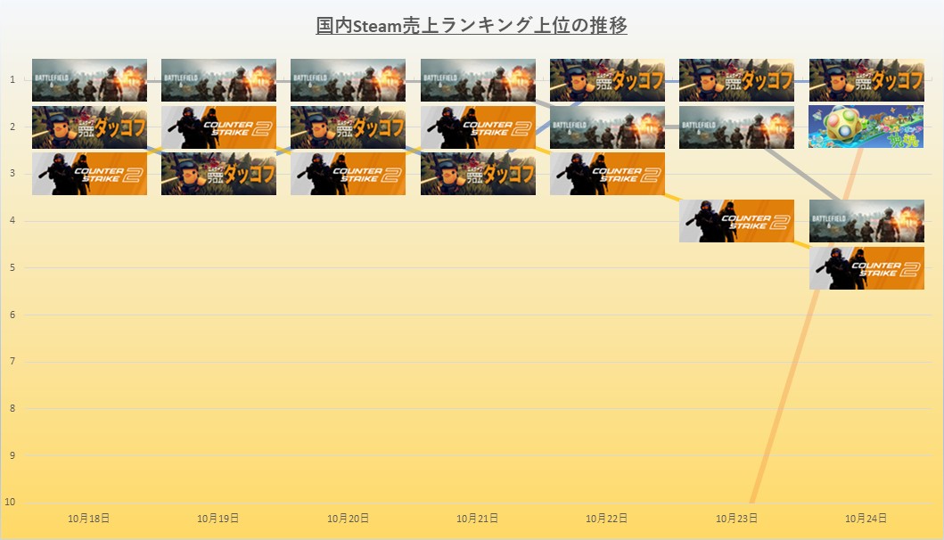【Steam(10/18~10/24)】『Battlefield 6』が前週から引き続き好調維持も『エスケープ フロム ダッコフ』がミリオン達成し中盤から一気に台頭