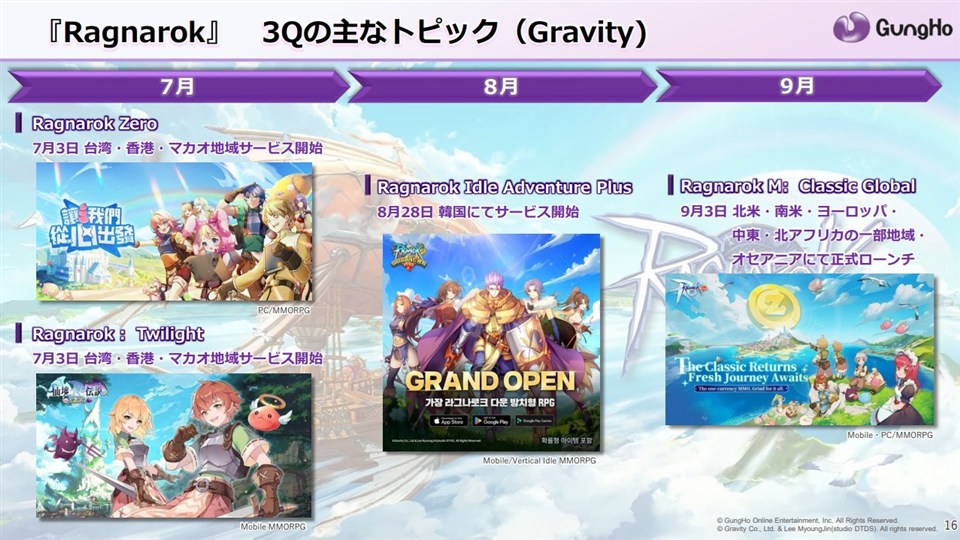 ガンホーの決算説明資料より…『Ragnarok: Twilight』を7月3日に台湾・香港・マカオ、10月23日に東南アジアでリリース 来期以降にリリース予定のタイトルも開発中