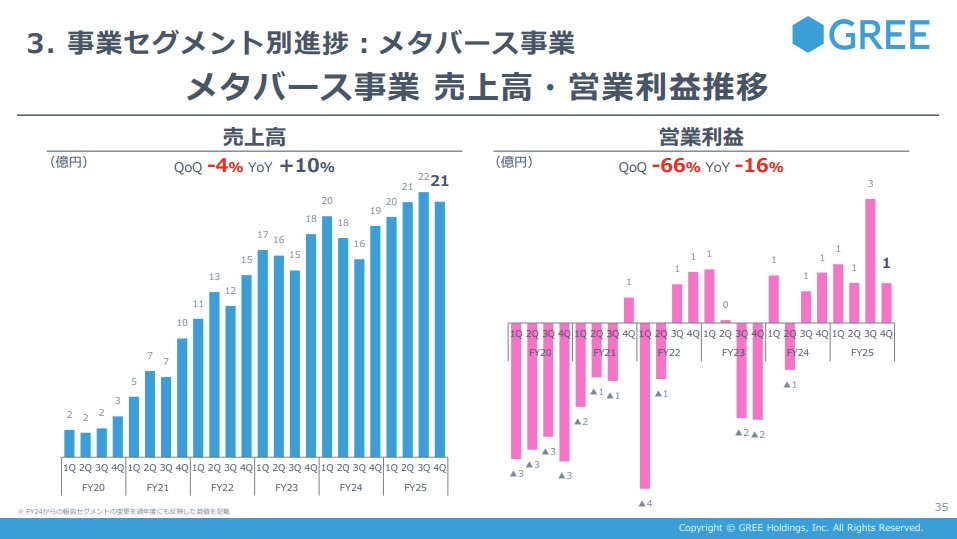 グリーHDのメタバース事業…4Q(4~6月)はタレント新規デビューに伴う一時費用増加で大幅減益に VTuber事業は2026年6月期中に単月黒字化目指す