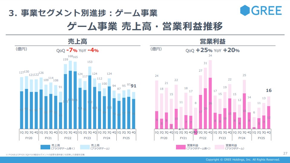 グリーHDのゲーム事業…4Q(4~6月)は『ヘブバン』周年の反動減でQonQで減収も決済手段多様化で利益率上昇 今期は自社IPのコンシューマ向けRPGをリリース予定